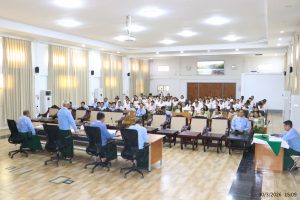 ဝန်ထမ်းစုံညီအစည်းအဝေးအား အစီအစဉ် (၁၀) ရပ်ဖြင့် ကျင်းပခဲ့ရာ ဦးစီးရုံးချုပ် စီမံခန့်ခွဲရေးဌာန ဒုတိယညွှန်ကြားရေးမှူး (စီမံ) မှ မီးဘေးကာကွယ်ရေးနှင့် မီးသတ်ရေငုတ်များသွယ်တန်းထားရှိမှုအား power point ဖြင့် ရှင်းလင်းတင်ပြခြင်း၊ ဌာနခွဲအသီးသီးရှိ ဝန်ထမ်းများမှ လိုအပ်ချက်များအား တင်ပြခဲ့ပြီး ညွှန်ကြားရေးမှူးချုပ်၊ ဒုတိယညွှန်ကြားရေးမှူးချုပ်နှင့် တာဝန်ရှိသူများမှ ပြန်လည်ရှင်းလင်းဆွေးနွေးကာ လိုအပ်ချက်များအား ဖြည့်ဆည်းဆောင်ရွက်ခဲ့ပါသည်။